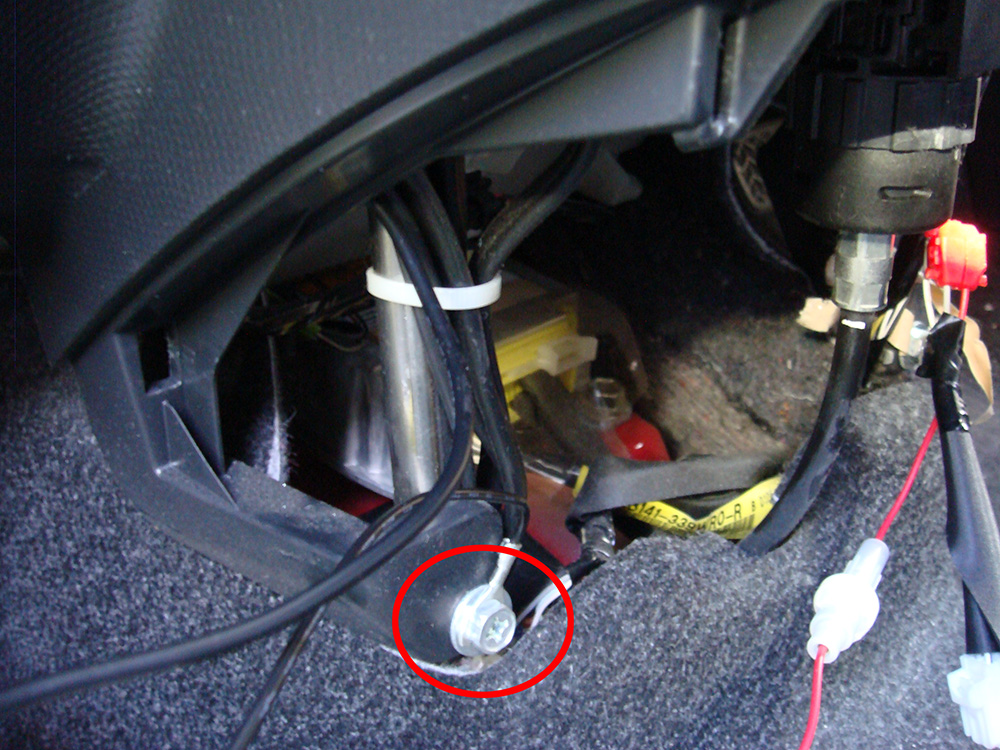 マイナス側の線は、車体の金属部分にネジ留めします。